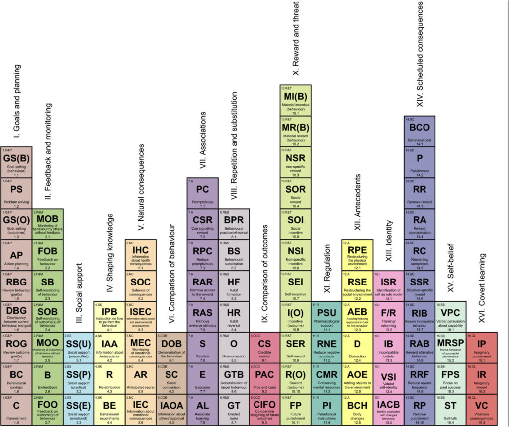 Các chuyên gia từ Đại học College London và Bỉ hành vi tư vấn Bỉ đã xem xét 93 kỹ thuật từ phân loại thay đổi hành vi để tìm các đòn bẩy hiệu quả nhất của tiêu dùng bền vững.